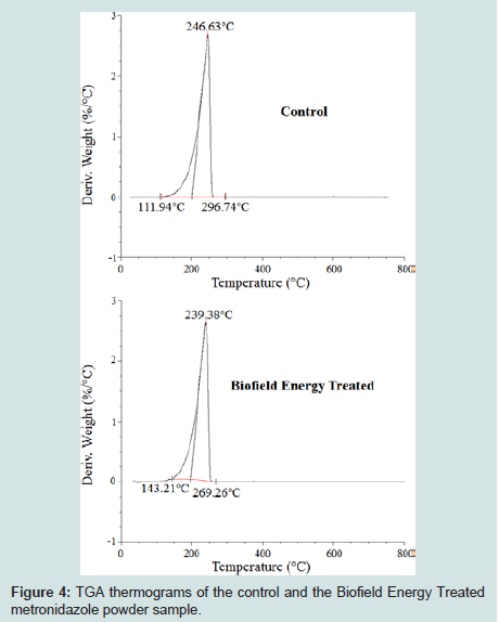 Table 4: TGA/DTG data of the control and Biofield Energy Treated samples of metronidazole powder sample.