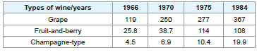 Notes: Fruit-and-berry wines were mostly fortified. Many inexpensive wines of Port, Vermouth and undeterminable types were statistically counted as grape wines [4,5].