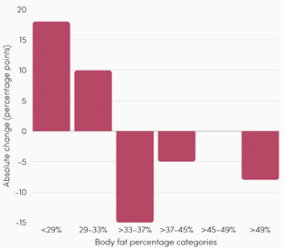 Figure 1:Absolute change in the percentage of women by body fat category (T0 – T2).