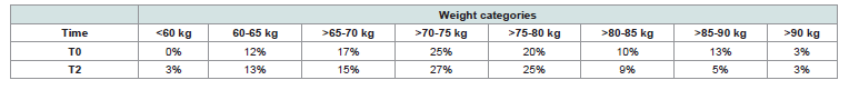 Table 2:Distribution of participants according to their weight category at baseline and after 2 months.