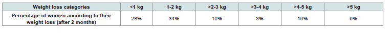 Table 3:Distribution of participants who lost weight according to the number of kilograms lost after 2 months.