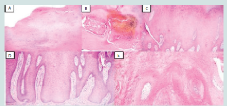 Figure 3: H&E staining (10x) showing (A) thick orthokeratosis, parakeratosis,