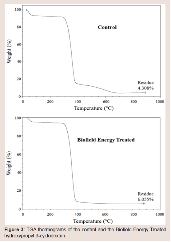 Table 3: TGA/DTG data of the control and Biofield Energy Treated samples of hydroxypropyl β-cyclodextrin.