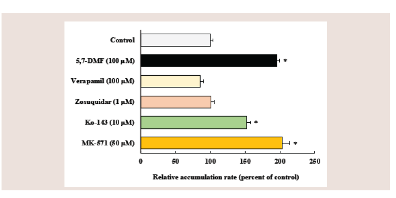 efflux transporters [44]. However, 100 μM cyclosporin A did not affect