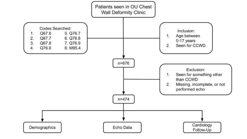 Screening echocardiograms (ECHOs) are increasingly utilized for patients with chest wall deformities to assess cardiac compression, function, and screen for underlying cardiac anomalies. Several studies have evaluated the implications of pectus deformities on the heart such as mitral valve prolapse, reduced right ventricle filling, and reduced cardiac output [4]. These are most significant in PE patients where the heart can be displaced or depressed secondary to the indentation of the chest wall. These anomalies could contribute to the most reported symptoms of chest pain, palpitation, and exercise intolerance by pectus patients. Given the association of CCWD and CTD, screening ECHOs also help identify cardiac or aortic anomalies that need to be addressed before pectus correction.