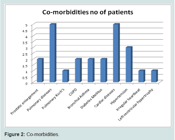 Co-morbidities noted in older patients and they mainly consist of hypertension, diabetes mellitus and pulmonary diseases like pulmonary Koch’s, COPD, Bronchial Asthma etc (Figure 2).